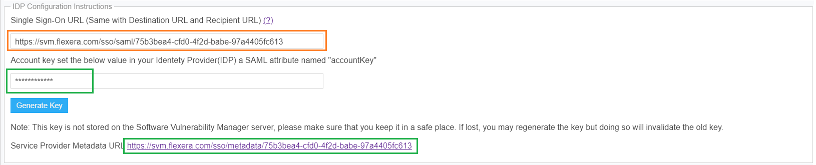 Copy the following from the Software Vulnerability Manager Configuration > Settings fields and paste in the Okta SAML Settings > fields: