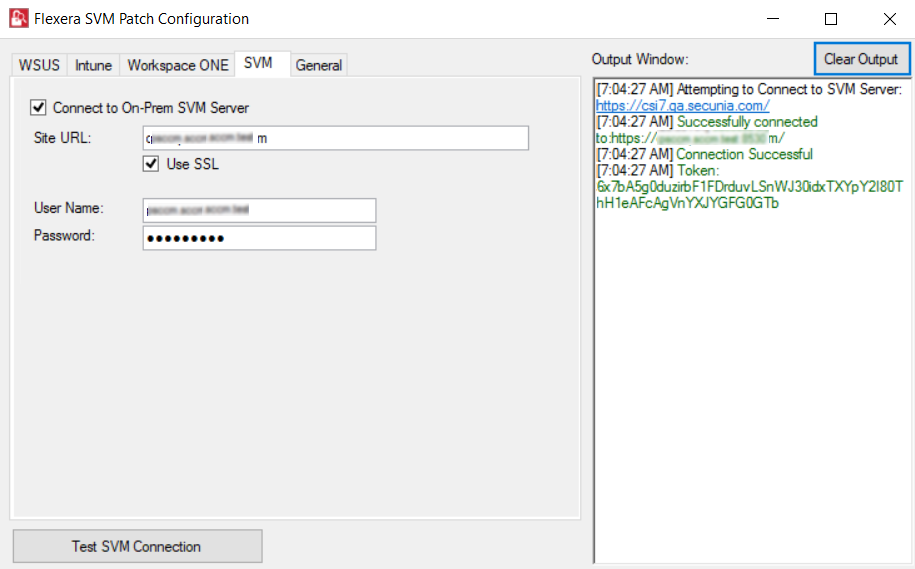 Click Test SVM Connection button, on successful connection you will receive a Token in the Output Window.