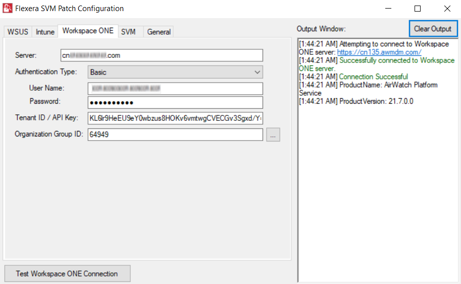 Click Test Workspace ONE Connection button, on successful connection you will receive a successful message in the Output Window.