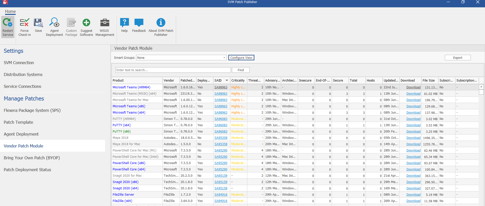 Click the Configure View button to configure the product display criteria. For more information, see Configure Product Display Criteria for Vendor Patch Module View.