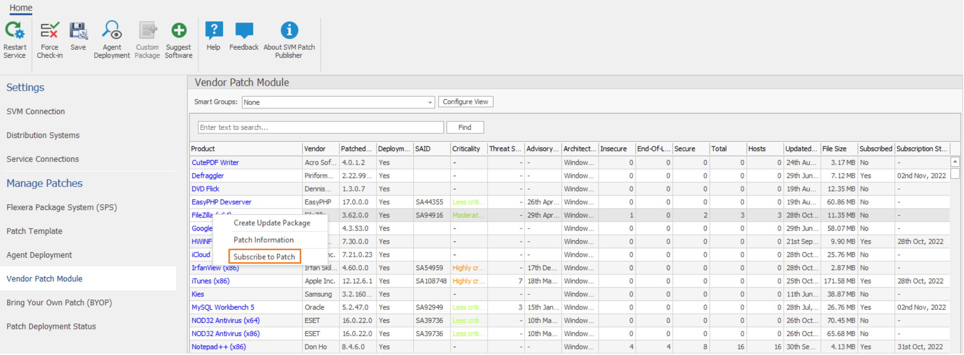 Select Subscribe to Patch option from the context menu.