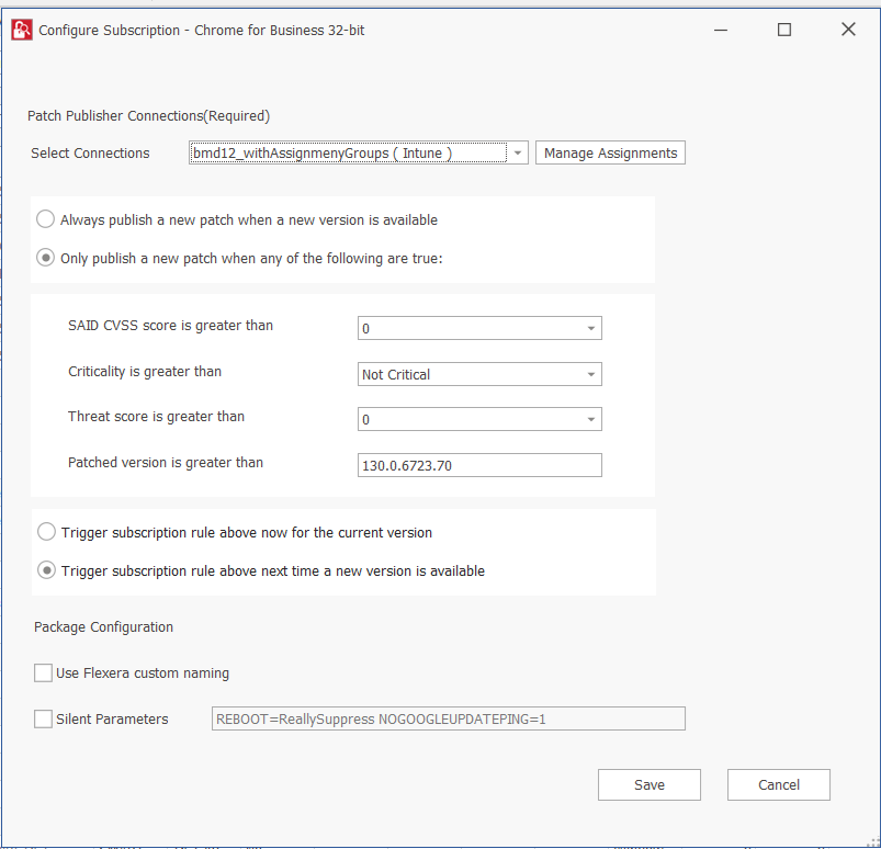 Always publish a new patch when a new version is available— Publishes when new version of the patch is available.