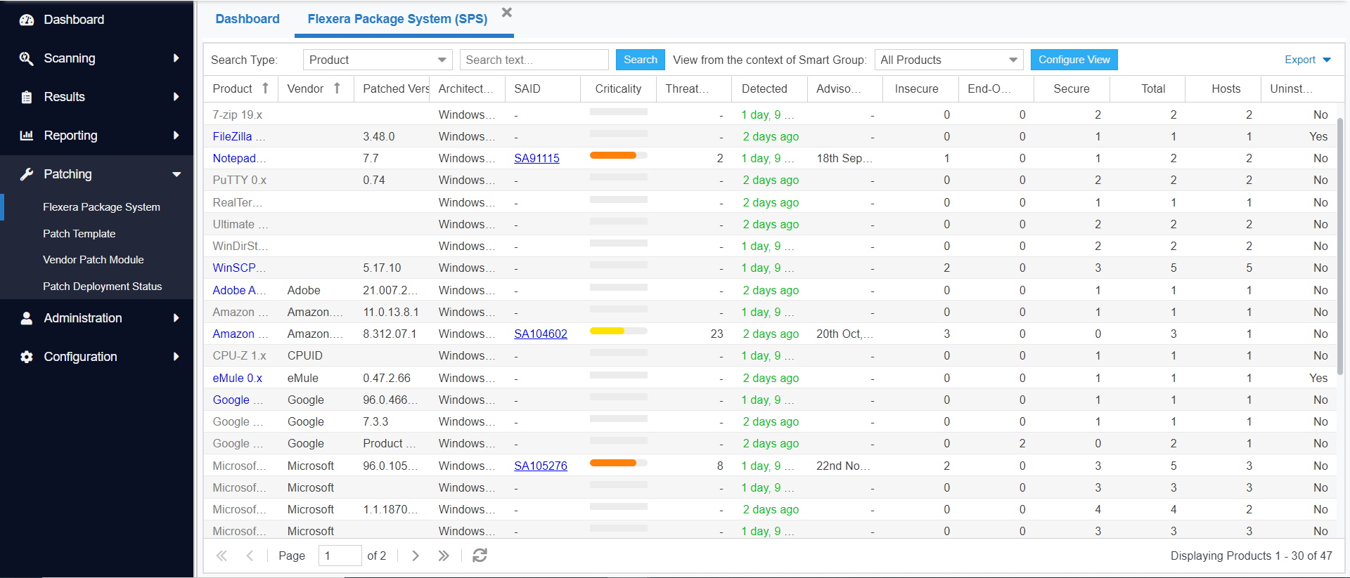 Flexera SPS page now available in non-IE browser also. In order to use complete feature of patching, need to install a Software Vulnerability Manager Plugin.