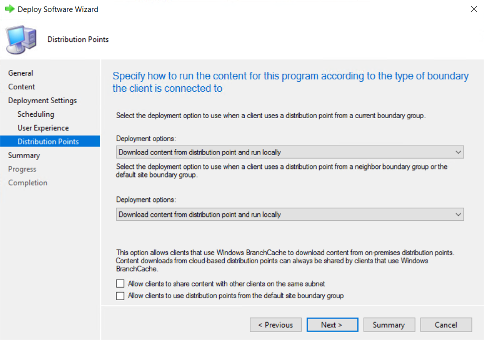 On the Deployment Settings page, ensure the purpose is Required and click Next.