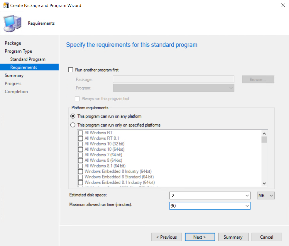 On the Program Type page, ensure Standard Program is selected and click Next.